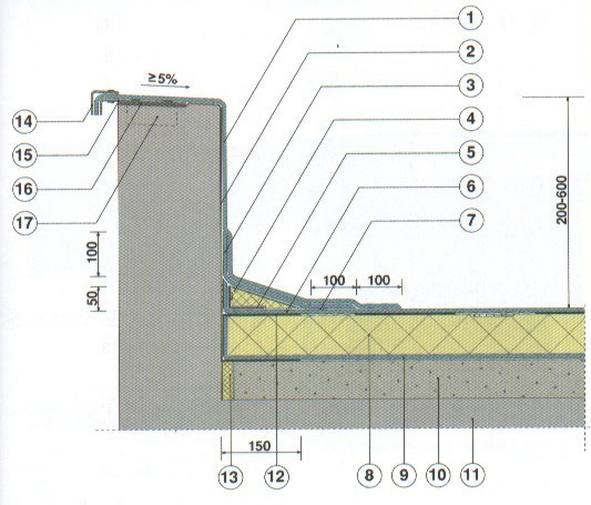 3 - Banda de intarire a hidroizolatiei in scafe sudata prin topire la suprapuneri si la hidroizolatia orizontala;