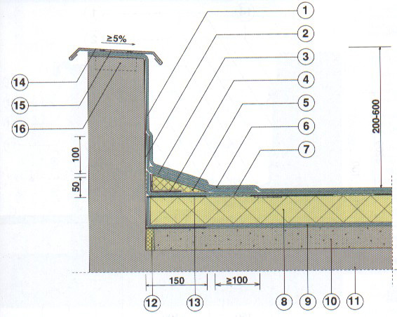 3 - Banda de intarire a hidroizolatiei in scafe sudata prin topire la suprapuneri si la stratul inferior de hidroizolatie;
