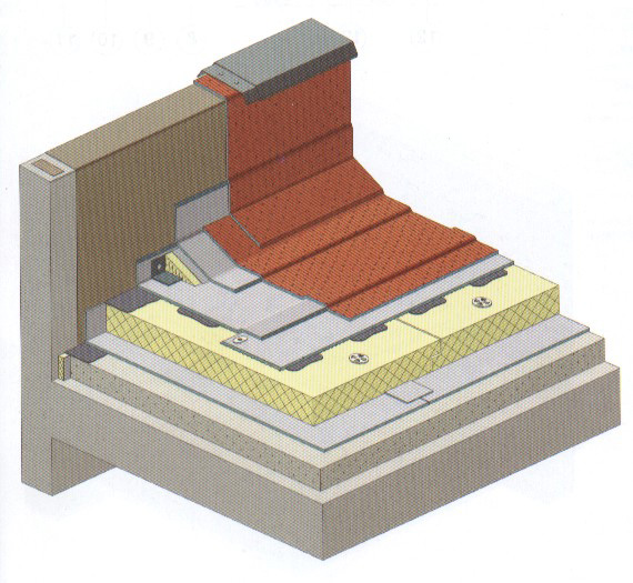 7 - Membrana bituminoasa care constituie primul strat de hidroizolatie si de difuzie a vaporilor de apa, se fixeaza mecanic la siprapuneri si pe conturul acoperisului. Fixarile mecanice sunt acoperite prinsudura etansa a stratului superior;