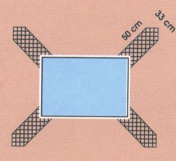 4. Armarea - se aplica un strat de mortar cu gletiera cu dinti (10x10 mm), in acest pat de mortar se aplica fasii de plasa 30x50 in zonele de colt si pe diagonala deschiderilor, se pozitioneaza plasa de armare (cu cuprapuneri de 10 cm la imbinari), peste care se "inchide" prin gletuire stratul de mortar. Grosimea stratului de mortar va fi de minim 2 mm.