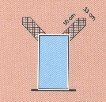 6. Montarea profilelor pentru colt, cu plasa - la colturile exterioare si la intoarcerile laterale ale deschiderilor este prevazut un profil special de colt cu plasa de fibra de sticla. Profilul de colt asigura o protectie mecanica sporita pentru aceste zone sensibile, si totodata o rezolvare estetica a muchiei fatadei.