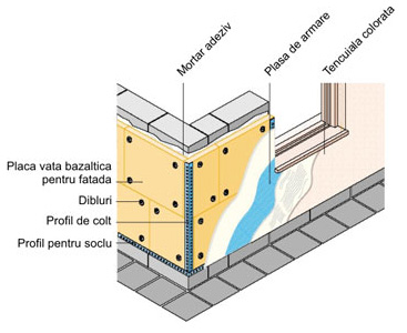 Sistem termoizolant pentru fatada pe baza de vata minerala bazaltica